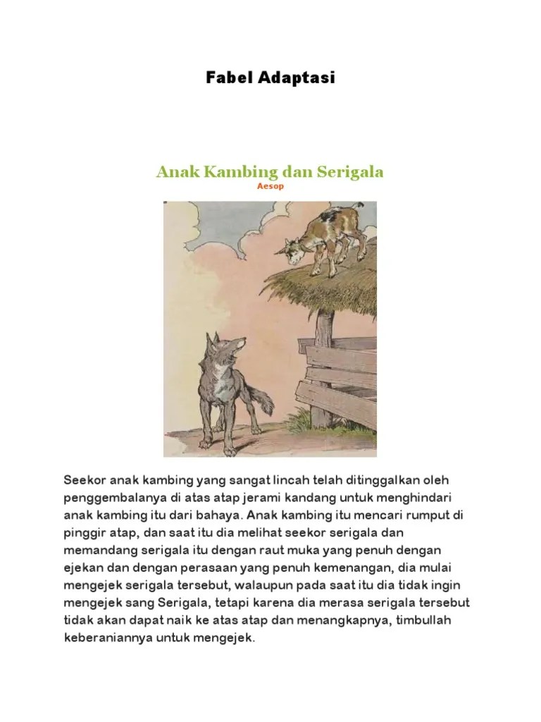 Fabel alami menggunakan watak tokoh binatang seperti kondisi nyata. Yaitu fabel alami fabel adaptasi fabel berdasarkan kemuculan pesan dibagi menjadi dua, . Kuda itu telah puas memakan gandum yang ada di . Jelaskan pengertian fabel alami dan adaptasi! Selain itu, fabel alami menggunakan alam sebagai latar (hutan, sungai, kolam, dsb).